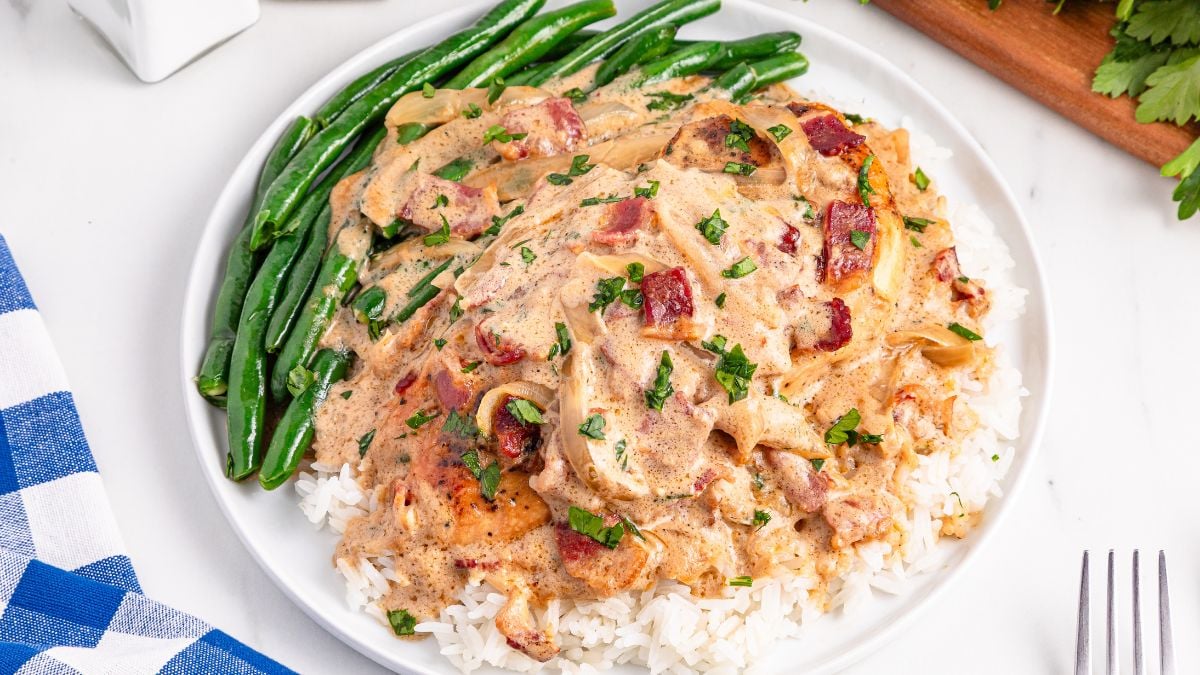 This smothered chicken and gravy is a comforting, hearty dinner made with tender chicken simmered in a rich, savory sauce. It’s an easy, satisfying meal that’s perfect for serving over mashed potatoes or rice on busy weeknights. Get the Recipe: Smothered Chicken With Gravy