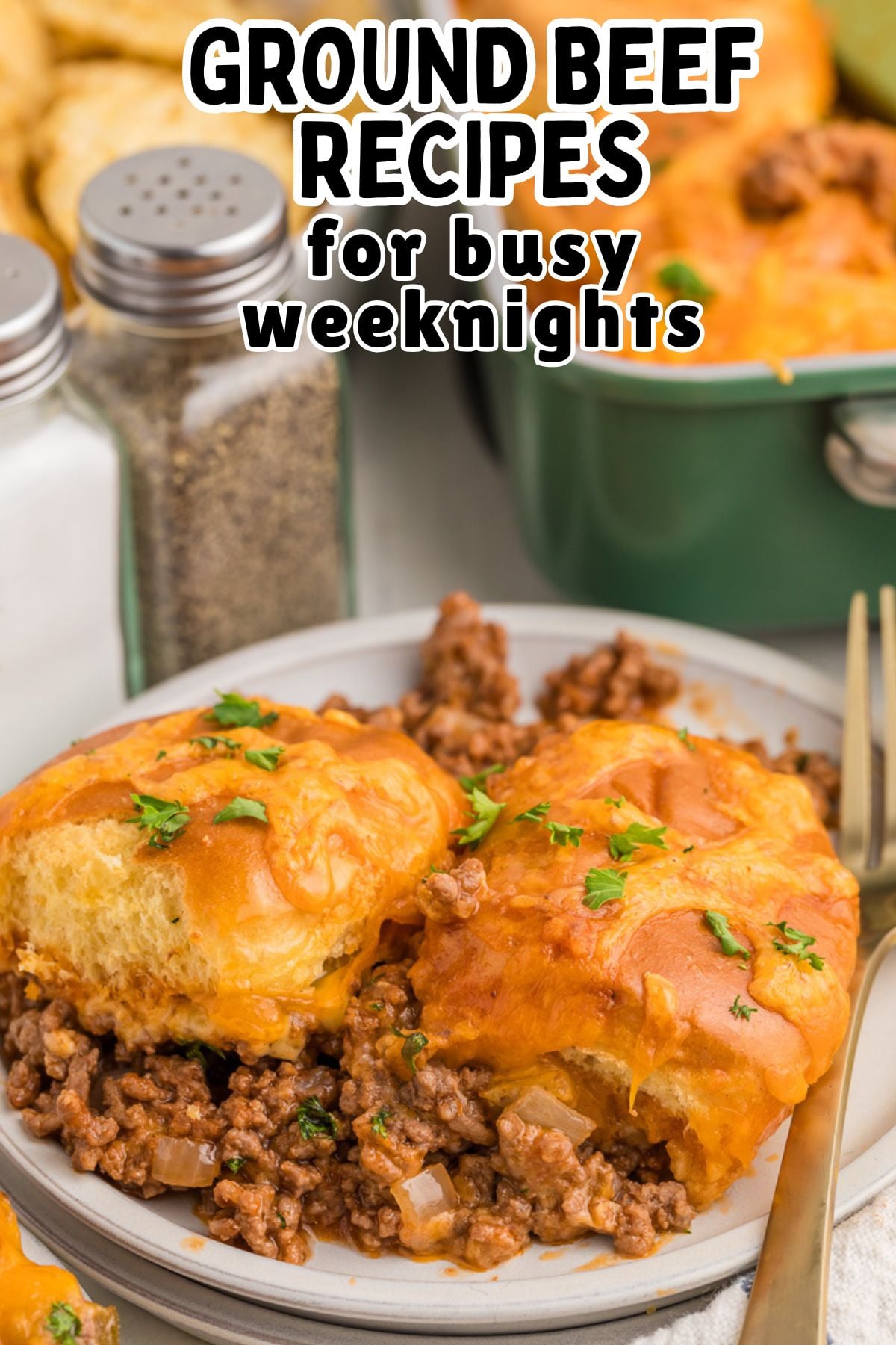 This simple Sloppy Joe Casserole features a delicious homemade sauce, perfectly seasoned, with a layer of melty cheese, both in the middle and on top, making it an ideal weeknight meal.