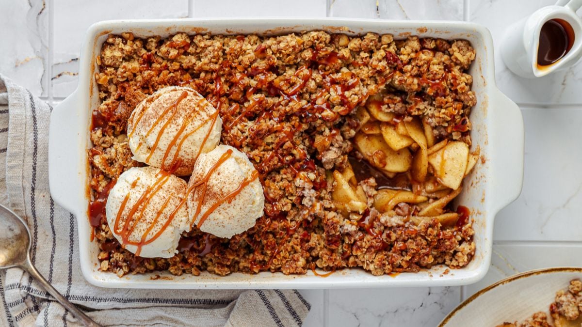 This easy apple crisp is a timeless fall dessert. Fresh apples, warm cinnamon, and a buttery oat topping bake together for a sweet, cozy treat that pairs perfectly with vanilla ice cream. Simple, comforting, and always a favorite during apple season. Get the Recipe: Apple Crisp With Oats