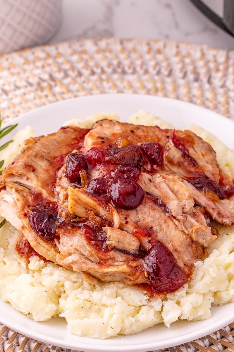 A quick 10-minute prep is all it takes to get this meal going, then the crockpot does the rest. Serve it sliced or shredded with mashed potatoes and a spoonful of that cranberry pan sauce for a cozy, comforting dinner that works for weeknights or holiday gatherings.