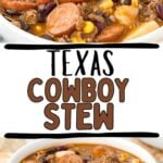 This hearty Cowboy Stew is loaded with ground beef, smoked sausage, beans, corn & potatoes. It’s perfectly spice and delicious served with my cornbread and honey butter!