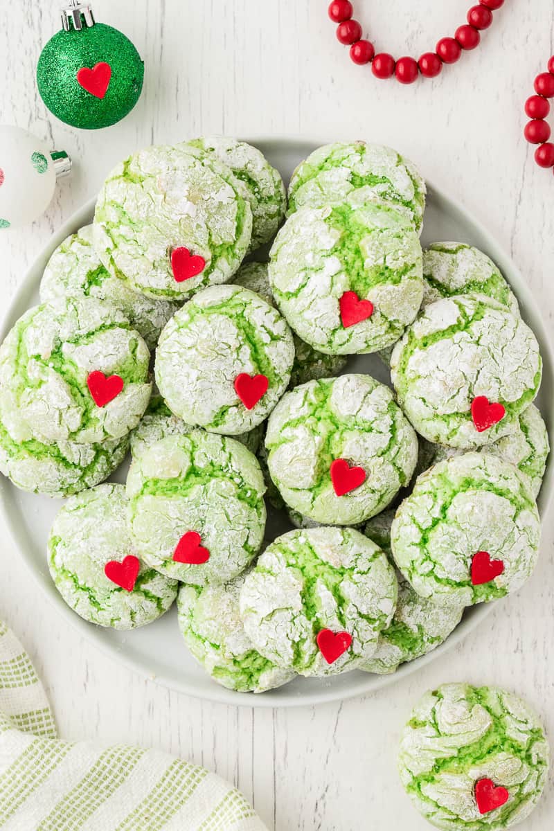 Another must-bake Christmas cookie, these adorable Grinch Cookies inspired by the classic holiday movie will melt your heart! These green Grinch-shaped heart cookies, rolled in powdered sugar, have become essential on any holiday dessert tray. Get the Recipe: Grinch Cookies