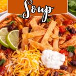 Loaded with tender chicken, beans, corn, and zesty enchilada sauce, this hearty soup is topped with crispy tortilla strips for the ultimate comfort meal.